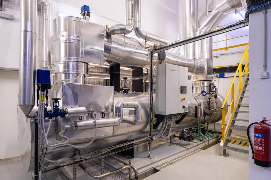 • Steam production: 670 kg/h of steam, used to further heat the air downstream of the heat exchangers and to ensure feed drying in the internal dryer, guaranteeing compliance with quality requirements.