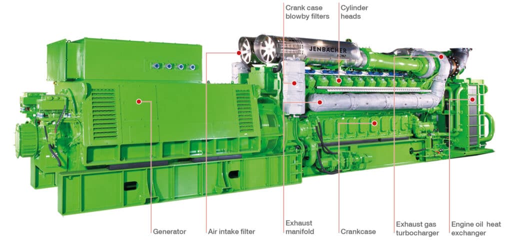 INNIO’s Jenbacher gas engines are available in the 0.3-10.0MW electrical output range for an individual generating set. Jenbacher gas engines are renowned for robust performance in challenging conditions and difficult fuel gases. Jenbacher gas engines are manufactured in the town of Jenbach, Austria in the Tyrol. The Jenbacher gas engine is designed from to run solely on different types of gas, and for different types of applications. Jenbacher has led the way in gas engine innovation over the last 50 years with developments including: